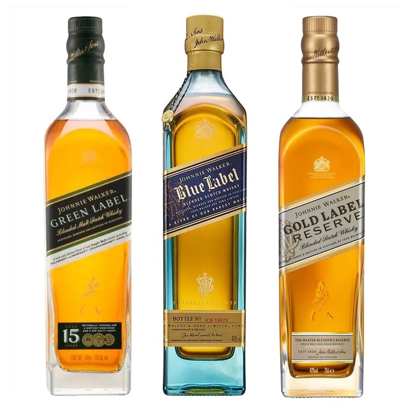 1 Johnnie Walker Etiqueta Azul, 1Johnnie Walker Etiqueta Verde, Johnnie Walker Etiqueta Dorada
